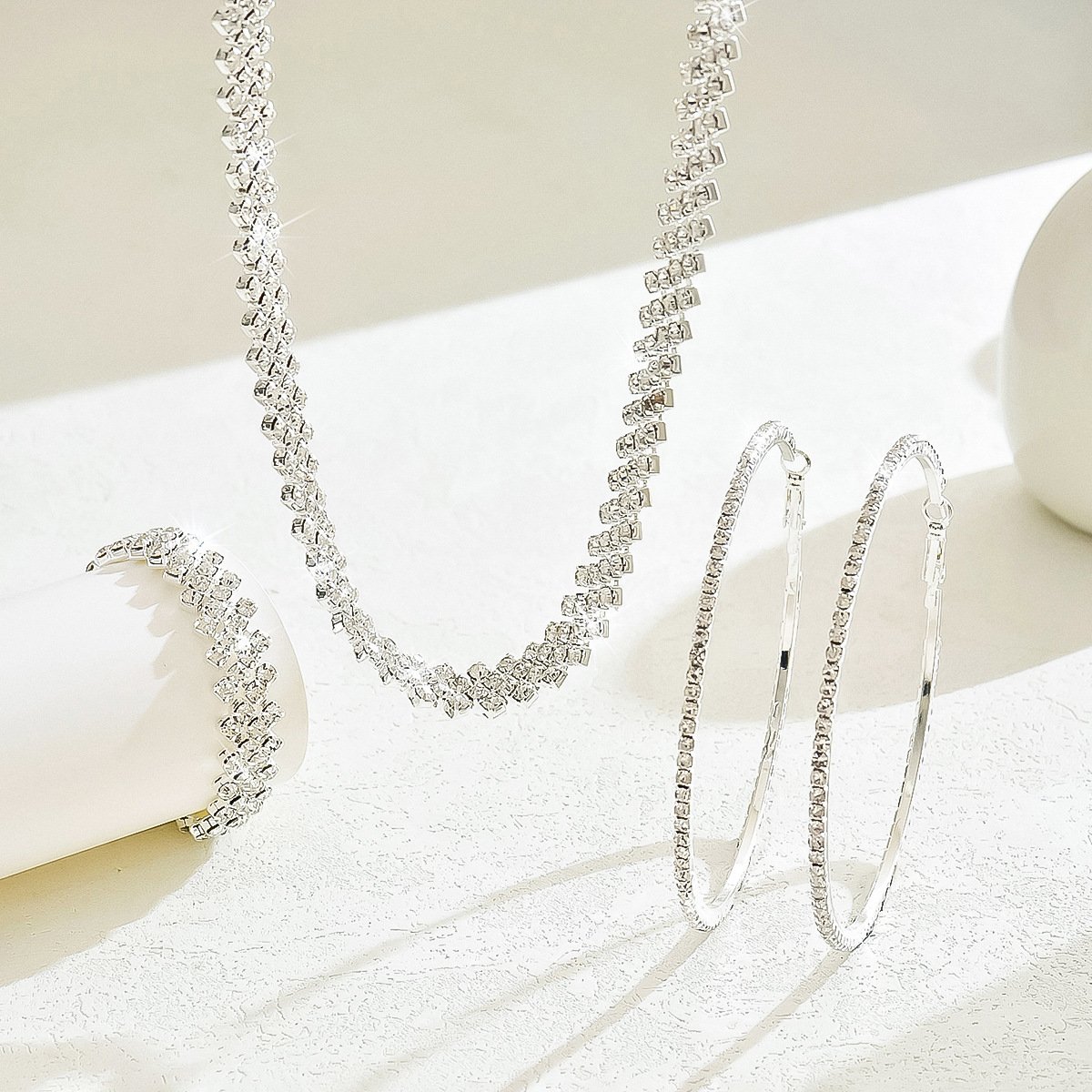 European & American Style Diamond Claw Chain Jewelry Set – Wholesale Accessories Necklace, Bracelet & Earrings